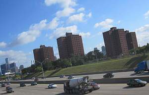 The projects represented a victory for labor, pro-housing, and civil rights forces at the outset of a long war with right-wing, corporate factions in the city. The battles were over space (as they are today)—who could live where, and what gods “urban renewal” would serve. The liberal UAW advocated a plan to ensure that “slums” were replaced with higher quality, affordable housing. The right could rely on the city’s angry white mobs as shock troops in an attempt to clear “blight” and replace it with monuments of commerce for white consumption.